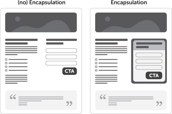 Encapsulation means putting the CTA, form or offer inside a box or container so it becomes its own focal point.