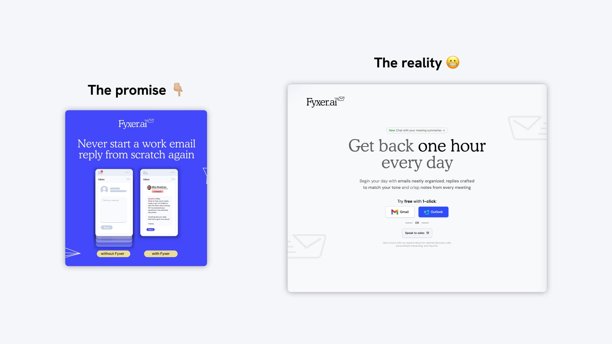 ✅ Fix: Keep the same story from ad to landing page. Highlight the same problem and outcome – “Never start a work email from scratch again” – then connect it to the time savings. That’s how you keep momentum and build trust.