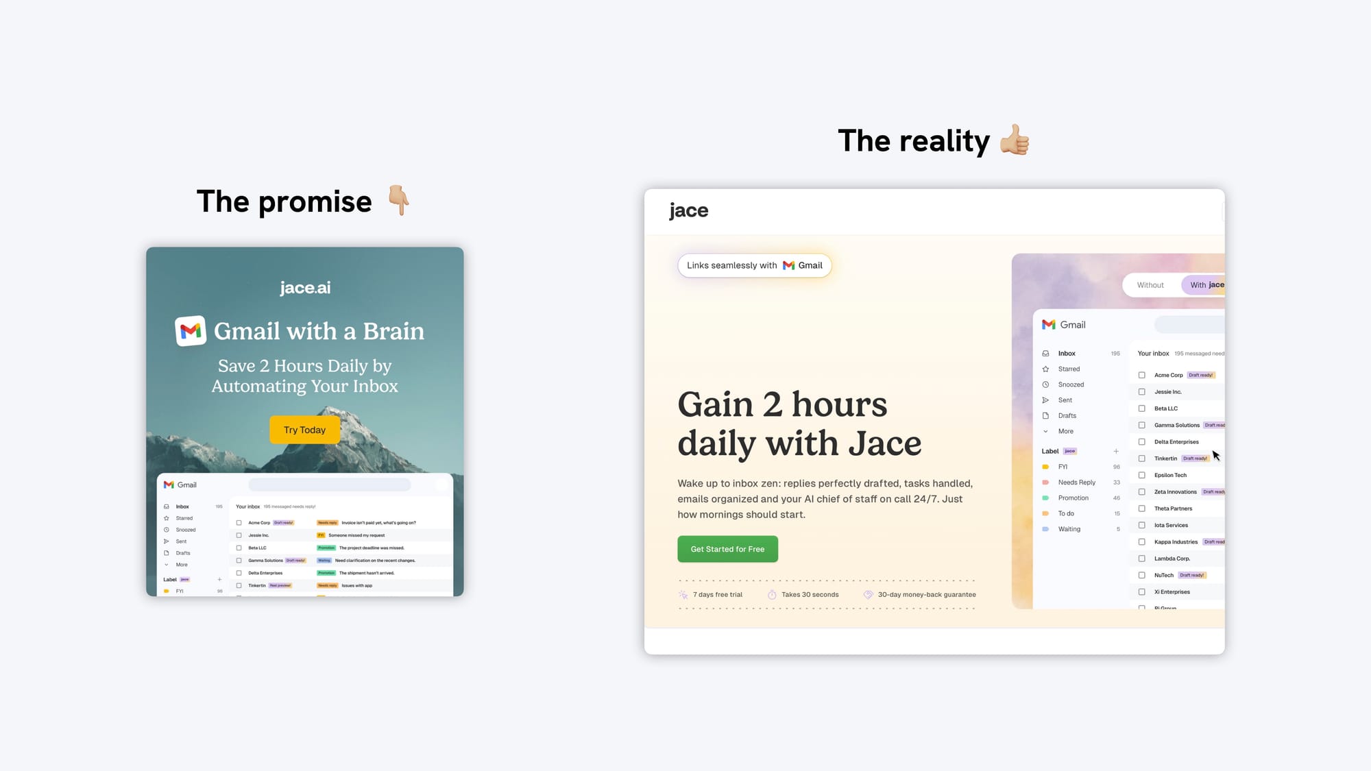 The reality: “Gain 2 hours daily with Jace.”